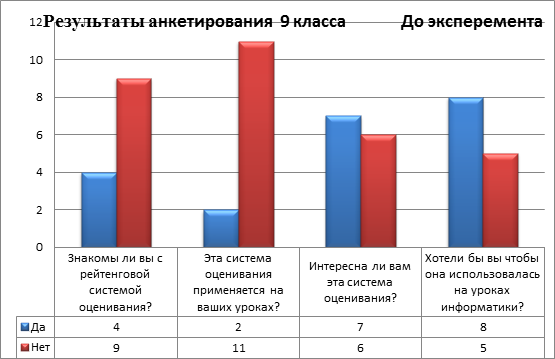 учащиеся 9 класса знакомы с рейтинговой системой оценивания, 9 человек из 13,