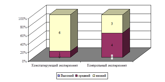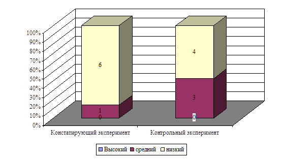 Сопоставление результатов констатирующего и контрольного эксперимента представлены на диаграммах (рис. 5-7).
