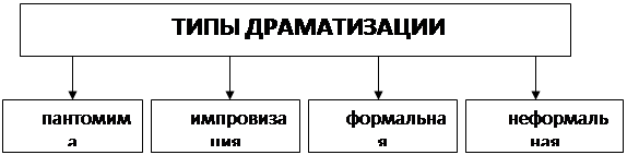 Определение сущности драматизации и ее роли в обучении иностранному языку позволяет перейти к рассмотрению ее типов. В процессе обучения иностранному языку используются четыре основных типа драматизации (рис.1):