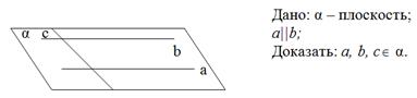 У: Рассмотрим решение следующей задачи. Доказать, что все прямые, пересекающие параллельные прямые, лежат в одной плоскости (стр.239)