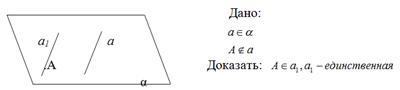 и параллельную прямой а. Докажем, что а1, параллельная а, единственная. Допустим, что существует другая прямая, проходящая через точку А и параллельная прямой а. Проведем плоскость