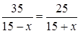 Моторная лодка, скорость которой в стоячей воде 15 км/ч, прошла по течению реки 35 км и против течения 25 км. На путь по течению реки она затратила столько же времени как на путь против течения. Какова скорость течения реки.