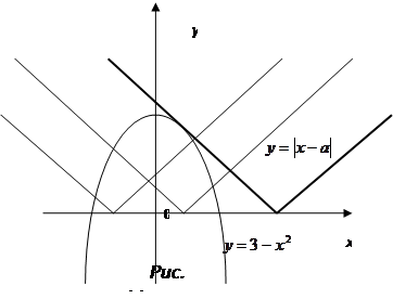 . Графиком левой части является парабола с вершиной в точке (0; 3), ветви которой направлены вниз. Графиком правой части является «прямой угол», вершина которого имеет координаты (0; а). В зависимости от значений параметра а этот «угол» перемещается вдоль оси абсцисс (рис. 11). Исходное неравенство имеет отрицательное решение, если найдется такое отрицательное значение переменной x, для которой соответствующая точка параболы расположена выше точки на «угле». Таких точек нет если вершина «угла» оказалась правее точки с абсциссой 3 или левее точки с абсциссой