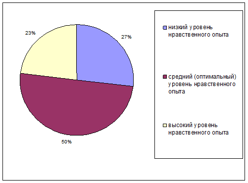 Для определения результативности работы с группой школьников с низким уровнем нравственного опыта, по окончании работы было проведено еще одно исследование, которое позволило выявить следующие результаты, указанные в диаграмме 2.