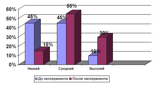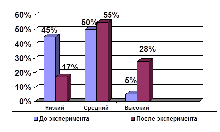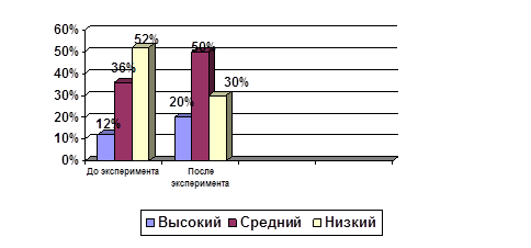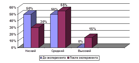 Эксперимент проводился по методике констатирующего эксперимента. Данные результатов контрольного эксперимента изображены в Таблице 2. (Приложение 1.).