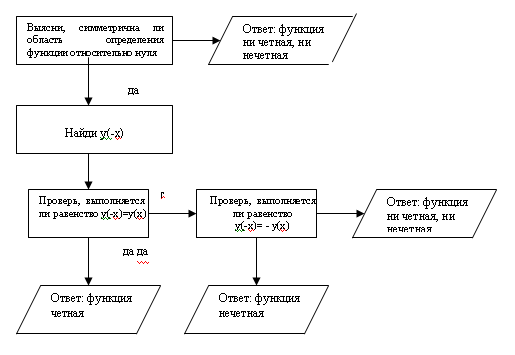 Определение «Четности и нечетности» функции. Это умственное действие может иметь следующую структуру: